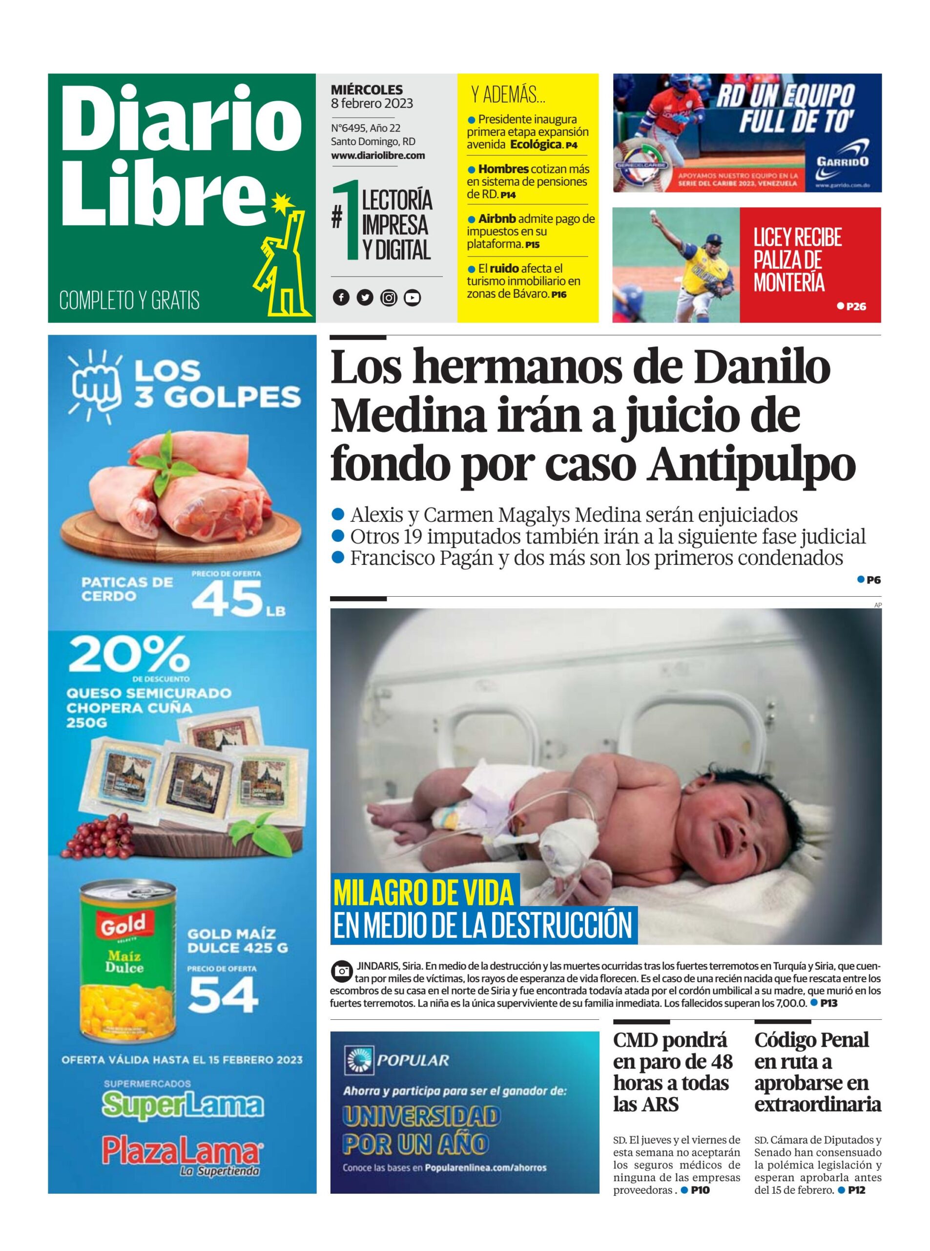 Portada Periódico Diario Libre, Miércoles 08 Febrero, 2023 By municipal - February 8, 2023 0 12 FacebookTwitterPinterestWhatsApp