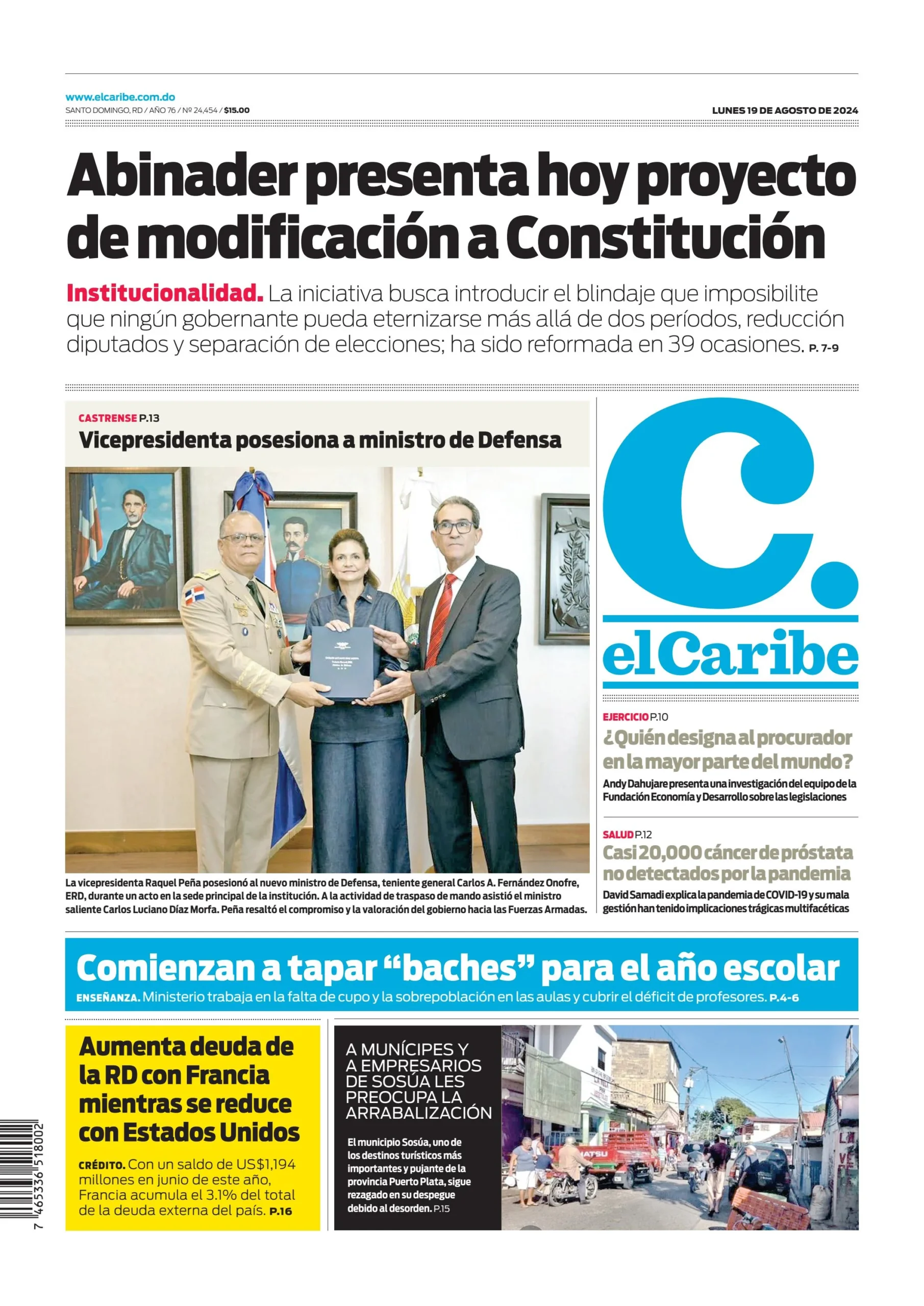 Portada Periódico El Caribe, Lunes 19 Agosto, 2024 By municipal - August 19, 2024 0 18 FacebookTwitterPinterestWhatsApp